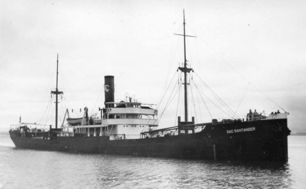 Castillo Guadalest1912 A cargo ship. Per 1 [data about 48% down, Daghestan (2)], 2 (Hansard, Thorpehaven), 3 (Miramar, link, you now must be registered to access). About 110 metres long, speed of 8 1/2 knots. Built for 'Common Brothers Ltd.', of Newcastle. But it could have been owned instead by Hindustan Steam Ship Co. Ltd., the main ship owning arm of Common Brothers. Sold in 1916 to Rome Steam Shipping Co., of London, (Fisher, Alimonda & Co. managers). In 1920, sold to Italian State Railways, of Rome, Italy, & renamed Antium. In 1923, sold to Parodi & Corrado, of Genoa, Italy, & renamed Bainsizza. In 1924, sold to 'Società Italiana di Navigazione Mercantile Villain & Fassio', also of Genoa, & renamed Alberto Fassio. In 1927, sold to Essex Transport & Trading Co., of London, (Meldrum & Swinson managers), & renamed Essex Judge. In 1937 sold to The Thameside Shipping Co. Ltd., of London, (P. B. Pandelis, managers?) & in 1938 renamed Thorpehaven. On Jun. 7/8, 1938, vessel, with a cargo of corn, was bombed by Spanish Nationalist aircraft, & on Jun. 10, 1938 was sunk at Alicante, Spain. But later raised & owned by the Spanish Government. In 1941, returned to service as Castillo Guadalest. In 1942, transferred to 'Empresa Nacional Elcano de la Marina Mercante, S.A.', of Madrid, Spain. On Aug. 24, 1951, 'sprang leak' & was abandoned in the western N Atlantic. At 39.33N/57.41W. Vessel foundered the next day, i.e. Aug. 25, 1951. Have not read the circumstances. Loss of life? WWW data is most limited. Am grateful for the data at 1. Can you add anything? Another image, perhaps?