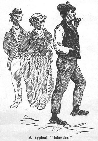 I like the way things are managed on the island. Every man does what he is best fitted for ; and I wish the British workman could see them sit down to their every-day meal of dried fish and potatoes, varied on Sundays by a little reasty bacon and cabbage ; he would be astonished at the splendid type of strong, hard-working and capable people it produces.