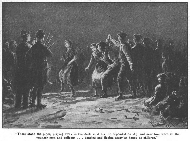 We stood and looked on in amazement ; how they managed to do such intricate figures and find their partners in the darkness was a mystery. They were dancing a reel called, I think, " The Waves of Troy," and the swaying, graceful movements of the young figures would not have disgraced any ballroom. They were delighted when we proposed leaving our lantern with them, but they first had to see us safely back to our cottage with it first!