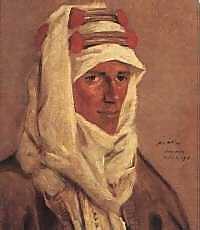 I could not locate, for these pages, an image of Peter O'Toole, but I did find the 'original'. At left above is a portrait of T. E. Lawrence by James McBey, the Official War Artist, painted in Damascus in Oct. 1918, on the day before Lawrence returned to England.