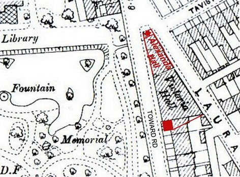 The hall closed after the tragedy, which was reported world-wide. But the eventual re-opening of the hall with changed doors & access is rarely mentioned & indeed little is known of the bookings during the rest of that century. However the death of Queen Victoria in 1901 & the accession of Queen Alexandra offered a golden opportunity to revitalise the disliked & ageing building. The hall which had room for 2,500 seated & 500 standing was in truth too big for many events & there was unused land to the north of the old hall. So why not extend the old building to form an extra smaller hall to be called Alexandra Hall? This was a convenient arrangement because Toward Road & Laura Street, running north/south, gradually come together making the site a narrowing strip of land. In fact, although the southern end of the old hall was some 150 ft. wide, the northern end where the stage was placed was only 110 ft. wide. (external measurements). A new hall, added to the north end, would continue to narrow to about 60 ft. at the top & so have room for fewer seats.