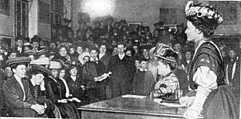 Amongst the more famous speakers was Emily Pankhurst, who in Feb. 1912 spoke at a meeting defending suffragettes.