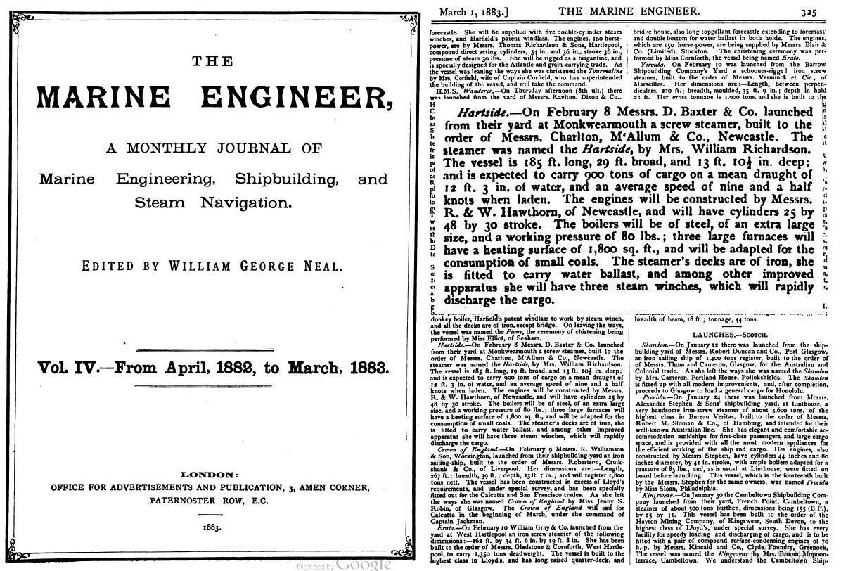 The matter of the shipbuilder name is not yet satisfactorily resolved - to the webmaster's satisfaction at least.