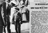 A most interesting postcard image was provided to the webmaster in Aug. 2012. Which image you can see in black & white here and in its original sepia here. It depicted thousands of men (& some women) outside the Police Station & Magistrates Court in Sunderland, in an image which included an Empire Cinema poster with the date of Feb. 10, 1908 recorded upon it. The vendor indicated that it possibly related to a strike or protest meeting against unemployment as there was a depression in shipbuilding at that time. The vendor added that on Feb. 12, 1908, Sunderland Town Council cut off the electricity supply to the shipbuilding yard of Sir James Laing as it owed them over £2,000. Laing's was soon after declared bankrupt, creating more unemployment. And ... later that month, 300 soldiers were drafted into Sunderland at the request of the Town Council because of rioting. We thank 'northern_collectables' for that fine data, part of their eBay listing.