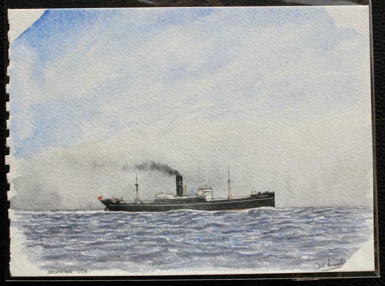 129.7 metres long, speed of 11 knots, registered London. Detail quite limited. A sister ship to Clarkavon. Owned by H. Clarkson & Co. Ltd. of Glasgow or London, J. & J. Denholm Ltd., likely the managers.