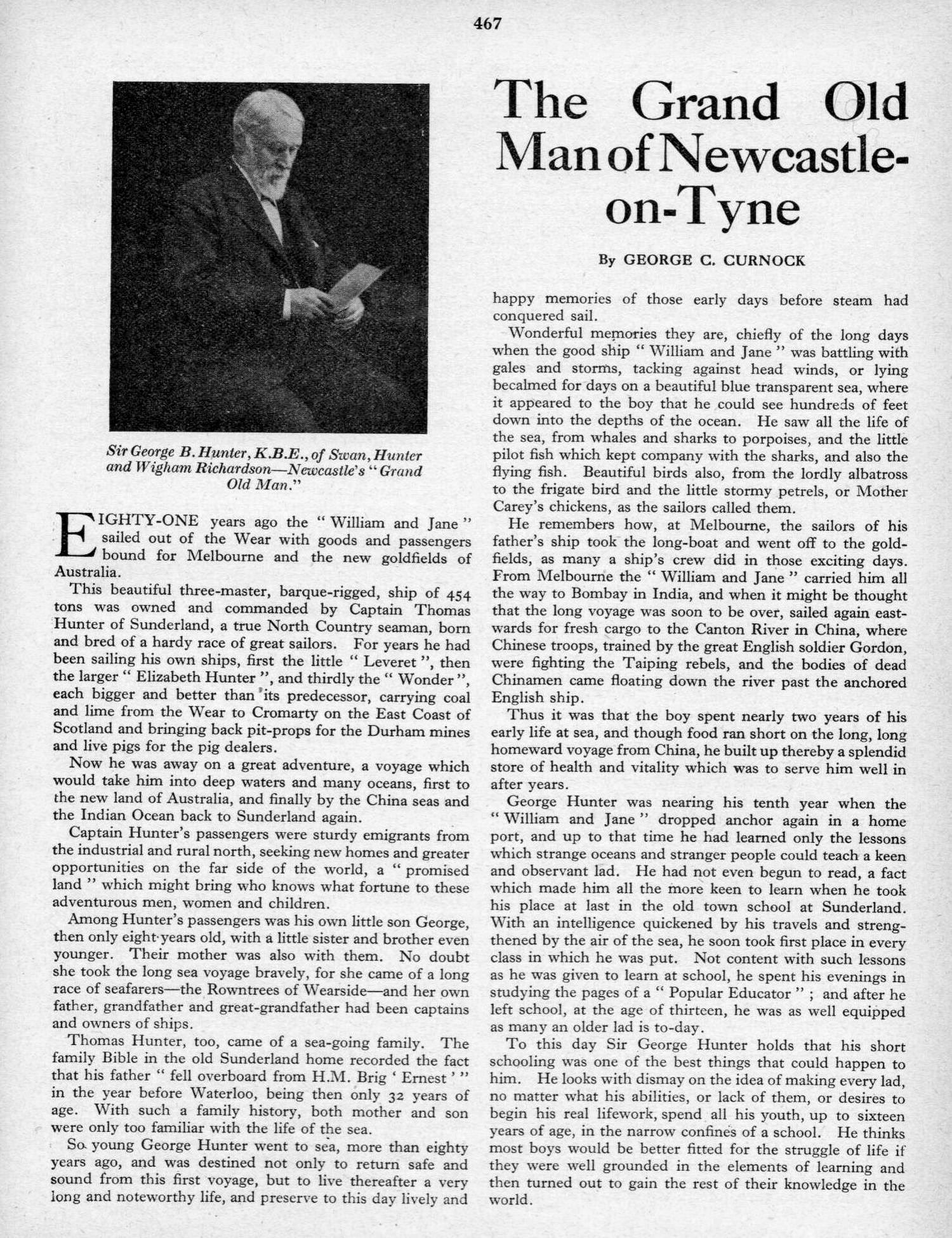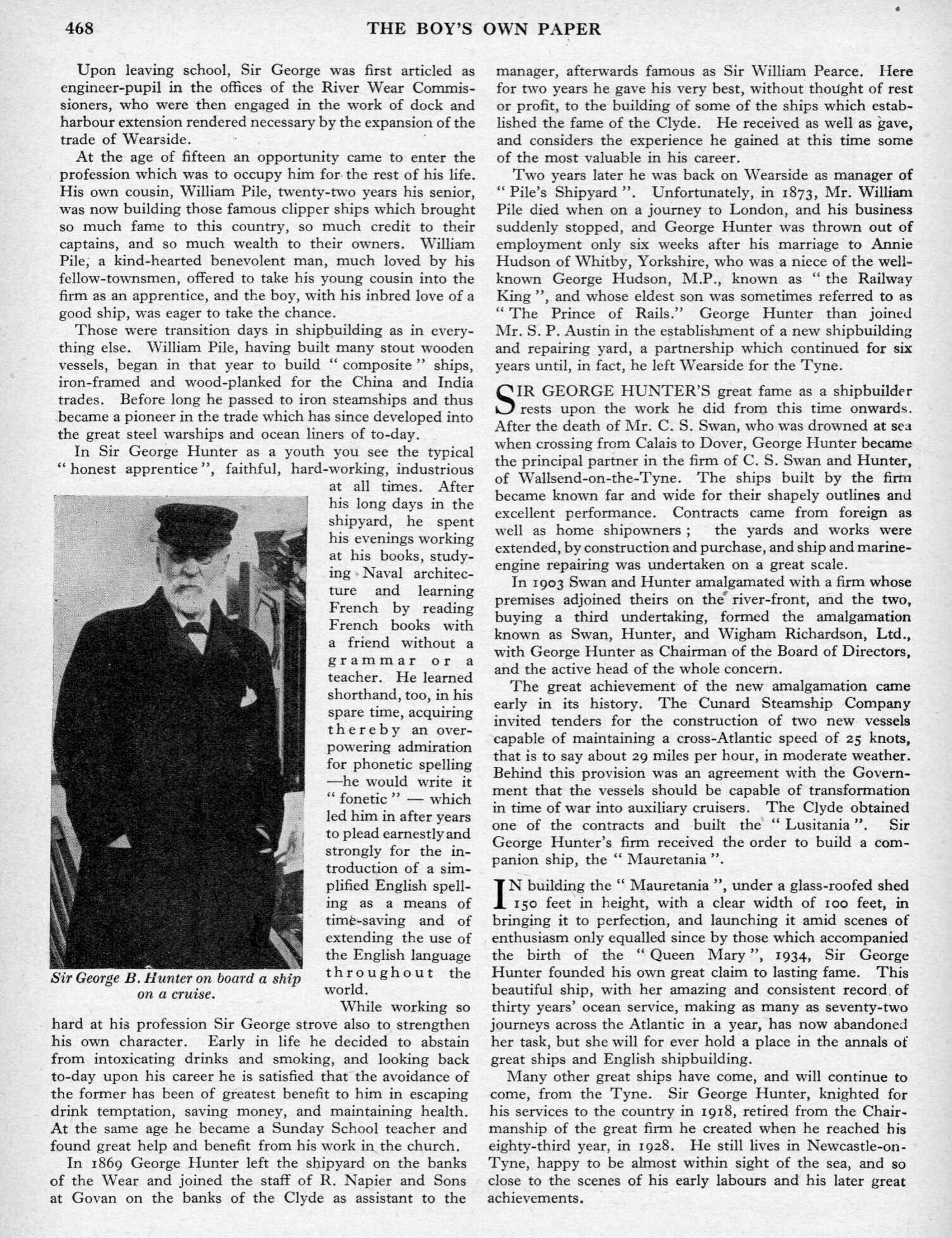 I have, however, come across an interesting 2-page article about Sir George B. Hunter, K.B.E. (1845/1937) - in 'The Boys Own Annual', Volume 58, of 1935-1936. At pages 467 & 468. Which article I have transcribed below to ensure that the text is 'Google' searchable. Ship names are in bold text.