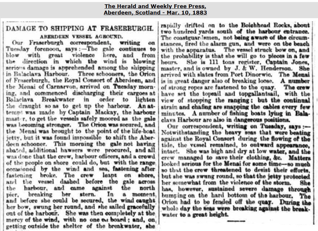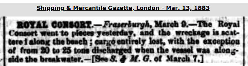 The vessel was launched, on Jan. 24, 1849, as per (in red) this launch announcement. Built for 'Cumine &' Co. of Fraserburgh, Aberdeenshire, for service from Sunderland to Fraserburgh.