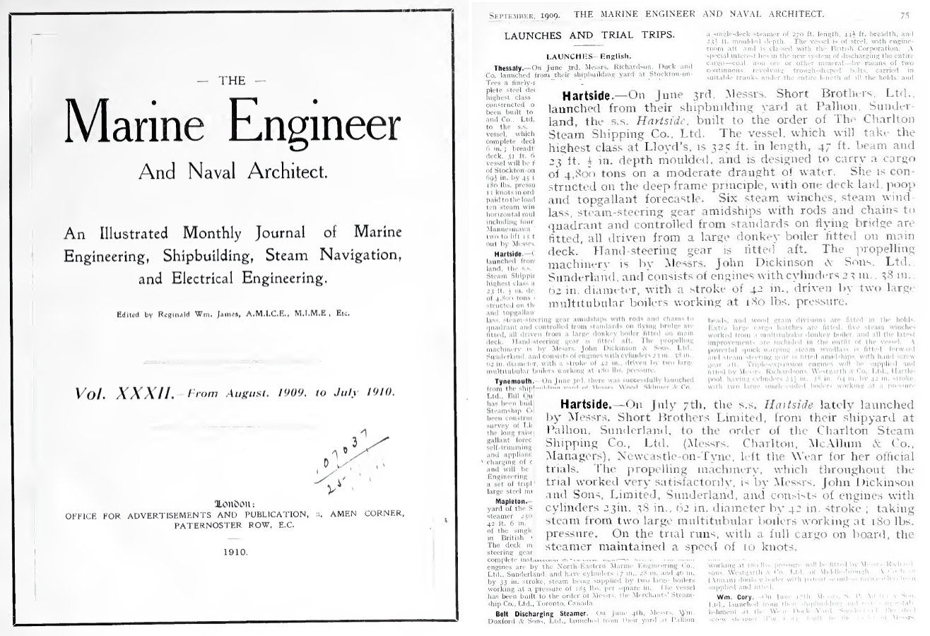 What were the official build numbers for 1909? 'Where Ships Are Born' states 57 vessels & 141,676 tons. If you can correct the above listing, do please contact the webmaster.