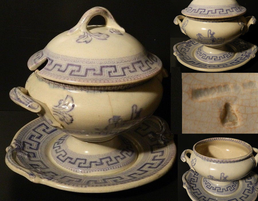 An update in late Nov. 2013. While there are changes to this total website quite literally every day of the year, those changes are rarely in the site's few pottery pages. I am inspired however to modify this page today having fortunately found this e-Bay page featuring a magnificent tureen, by Moore & Co., believed to date from c.1820. 7 1/2 inches tall. Do drop by & see all of the vendor's many fine listing images. A quickly prepared composite of a few of those images follows.