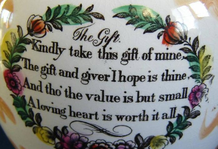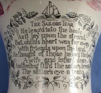 It is probably the nature of the matter, but it would seem to me that quite a few of the verses that are recorded below, do not appear in that 1984 volume. Or do not appear that I can see. It may well be that some of the verses below, largely from items sold on e-Bay, were incorrectly identified by the vendors as being the work of a Sunderland pottery. I do not really know, however. If you have thoughts on the whole matter, your input is invited.