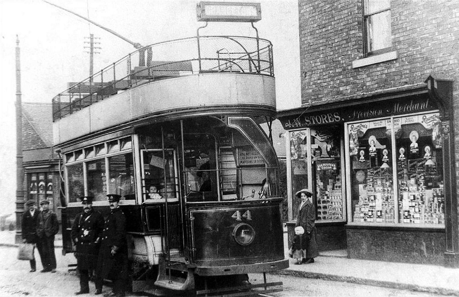 7) An early image of tram #44. Taken at Fulwell Road at the junction of Sea (view) Road. The image is thanks to Clive Ketley, who advises that the shop on the right is still there. It was 'J. W. Stores' when Clive was a boy but is now a 'DIY Maxwell's'.