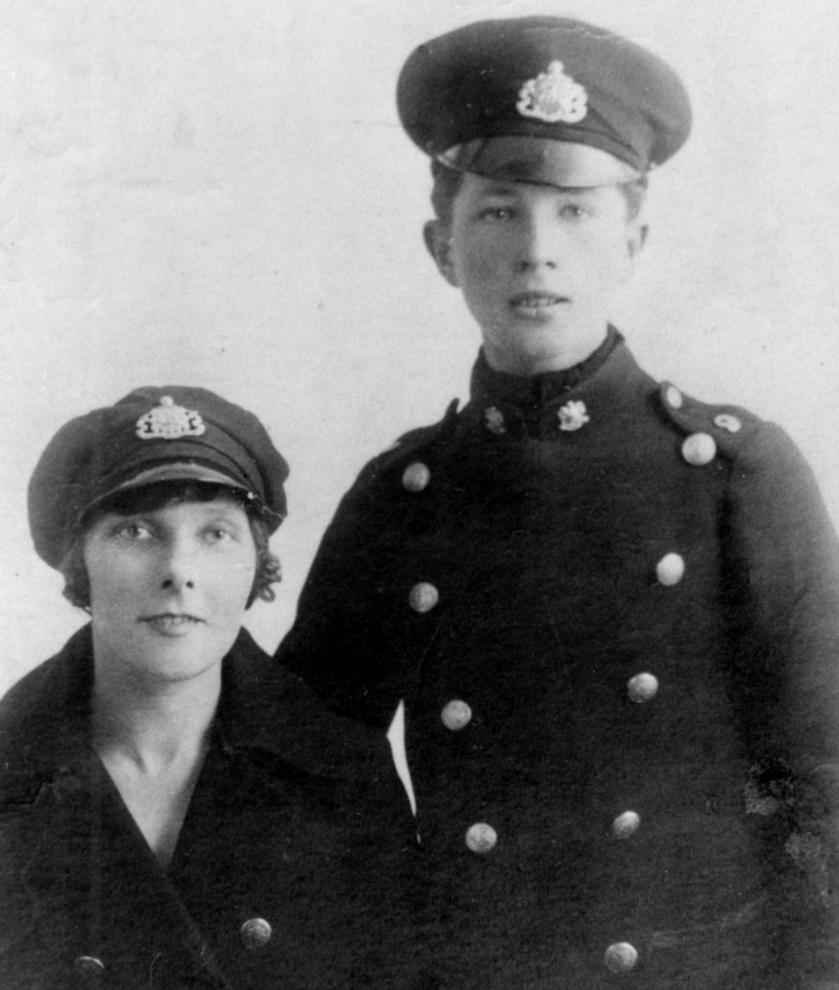 10) Some tramways staff. With descriptions by Malcolm Fraser. The image at left below shows Miss Annie Goodall, one of the few lady tram drivers at Sunderland in 1918. With her, in a very smart uniform, is one of the 'points boys' who worked at the junctions on the system. Annie met her future husband on one of the trams & became Mrs Hogg. Malcolm advises that the image was provided through the kindness of Mrs Hogg's son Wilfred. The image at centre shows female staff in around 1943 & specifically shows Inspector Muriel Newton (bottom right) with a driver & six conductresses posed on the platform of one of the three 1935 twin-headlight cars (26-28) at the Southwick Green terminus. Last but not least, at right is Jenny Newton, the very first 'conductor' - shown at Sunderland in 1916. 30,000 women took part in a protest march in London in 1915, demanding the right to serve their country. Prime Minister Lloyd George granted their wish & allowed them to take what had been regarded as men's jobs. These included working on tramways. Malcolm adds that the terms 'clippie' & 'conductress' were not used at that time.