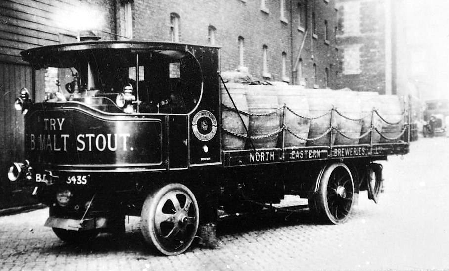 The webmaster is, as is apparent, a pack-rat when he spots interesting data. So ... a few webmaster modified items, ex e-Bay, that relate to The North Eastern Breweries Ltd., of Wear Brewery, Sunderland, & of Stockton-on-Tees too. The lorry was stated to be a PT8 steam lorry.May I suggest that you navigate the site via the index on page 001.