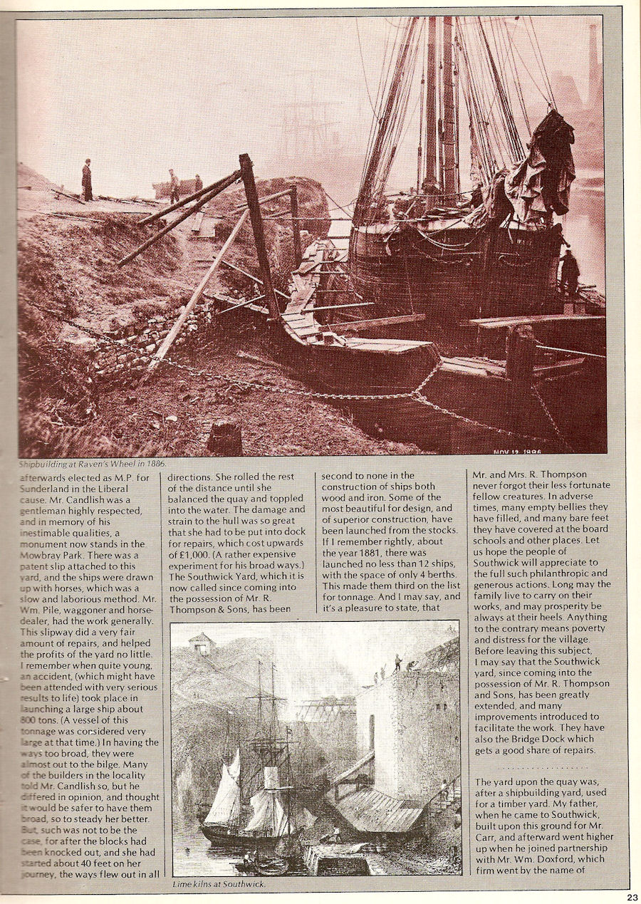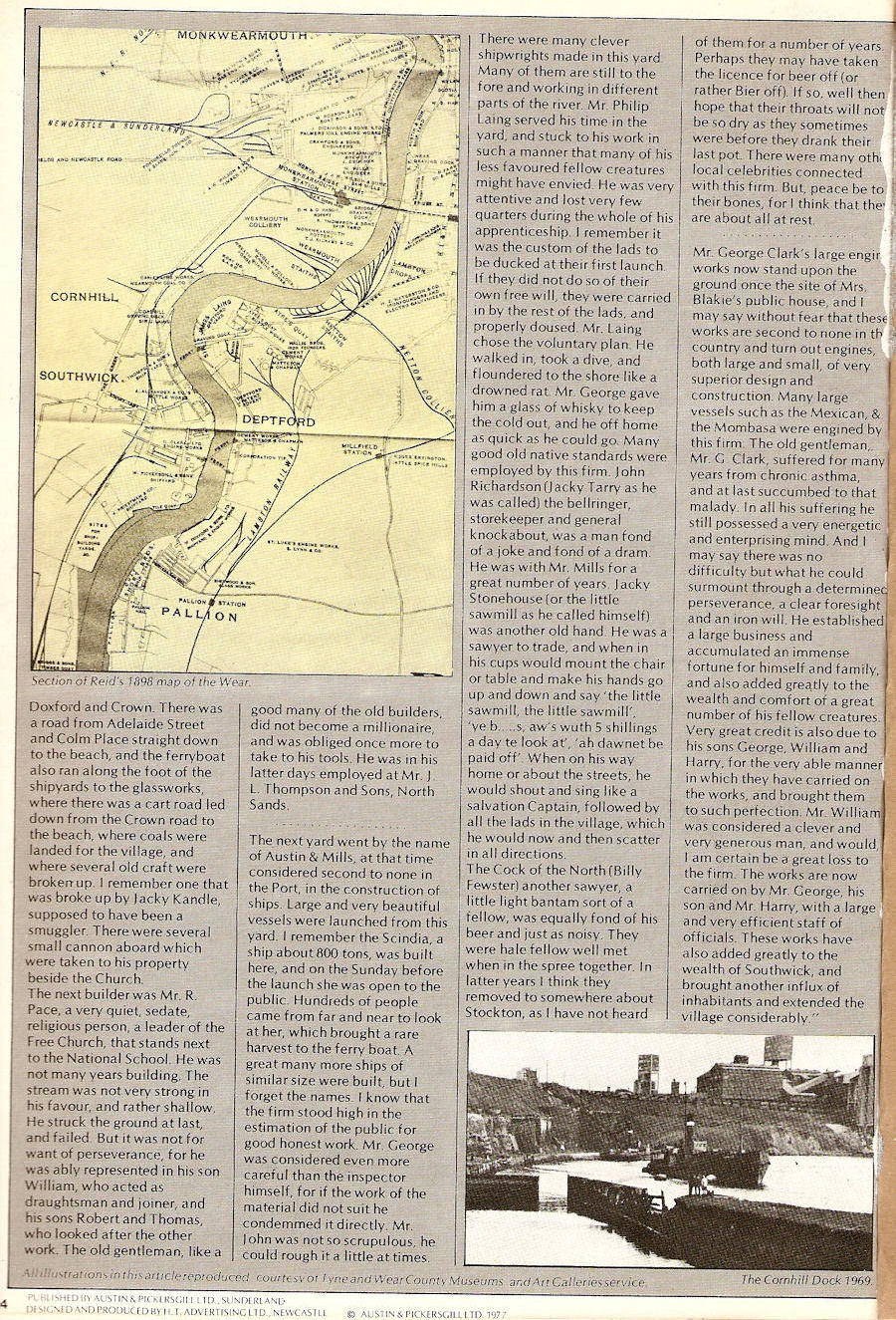 In or about 1893, Luke Crown commenced writing a manuscript about Southwick. And apparently added to it as the years passed by. His manuscript has survived, or at least a copy of it has survived, & that copy is today is in the Sunderland Central Library archives. It is now available on site, as a 'pdf' file here, transcribed by Adrian Abbott (thanks!) & appearing on site with his kind consent. It is not known if the original exists today. It makes interesting reading for anyone interested in the early shipbuilding history of Southwick, being an east to west journey along the north bank of the River Wear at Southwick, with a commentary on the history of each location & the shipbuilders that built ships there.