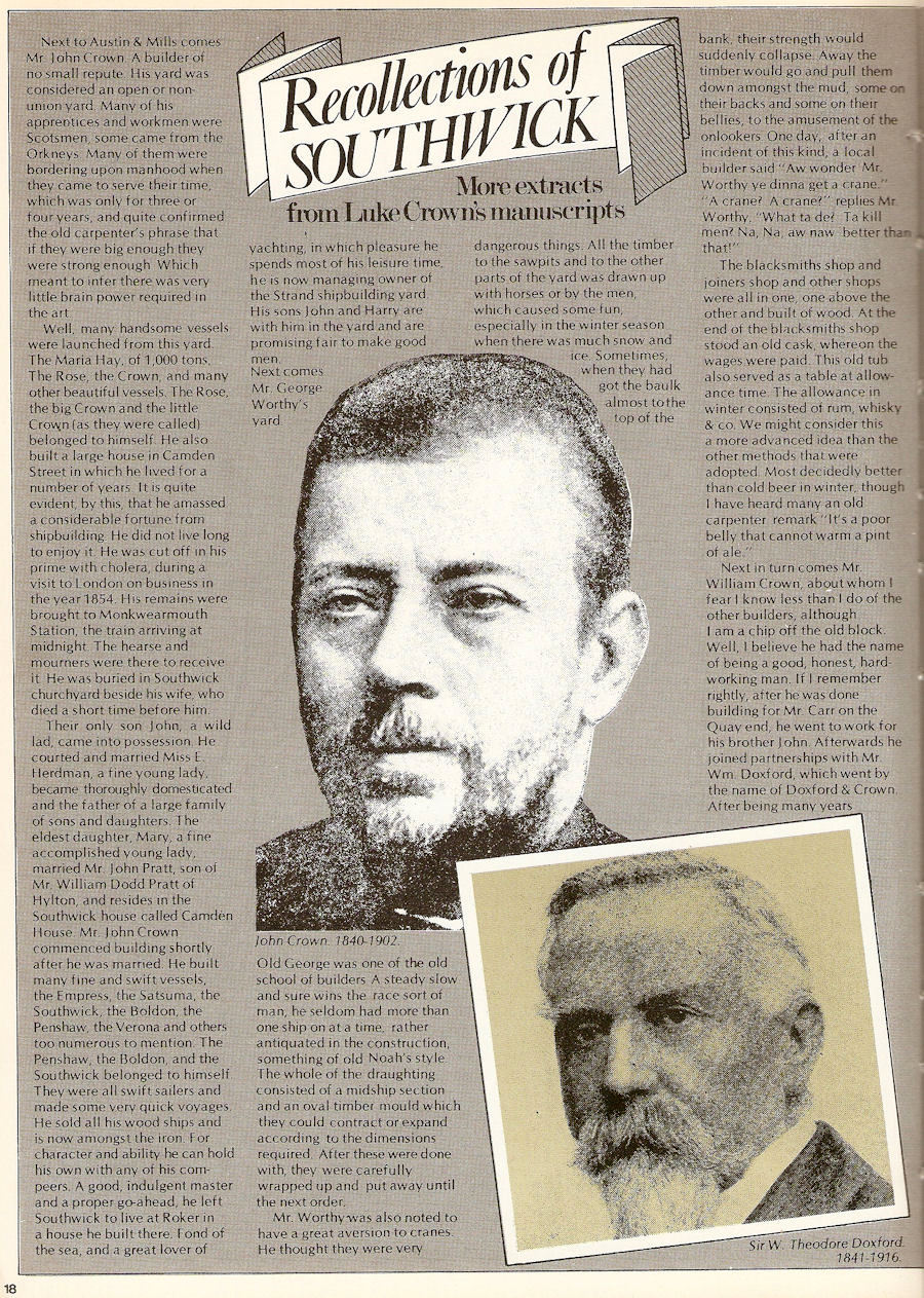 Corrections in any of the material which follows, however tiny, would be most welcome. And additions, of course! Test.'RECOLLECTIONS OF SOUTHWICK' - A MANUSCRIPT BY LUKE CROWN
