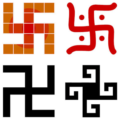 At left, thanks to Wikipedia, a few examples of the swastika. Many more are below from the same source. .It has been used in many forms, in both clockwise & anticlockwise forms & in many less obvious configurations.