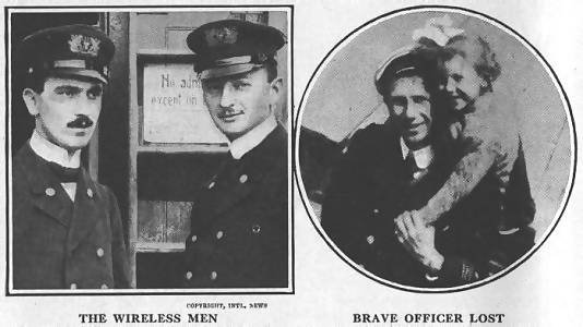 The two Marconi operators on the "Volturno," whose "S.O.S." signal brought the ten rescuing ships, and who remained at their post, amid the intense heat and smoke, until their aerial finally fell and made further communication impossible.