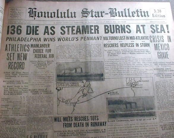 And a third newspaper cover, from a now quite unknown source but surely from e-Bay. The Honolulu Star-Bulletin. The date is a bit difficult to read but I think it is also Oct. 11, 1913.