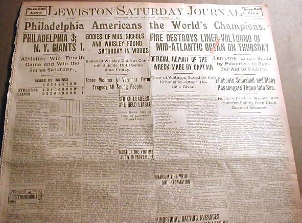 And from the same source, but an item long since sold I do believe, is or was the following item. The Lewiston Saturday Journal issue dated also Oct. 11, 1913. Lewiston, Maine, perhaps?