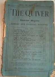 I thought I should show you the title page of the 1882 volume. And do so below. Now you would think from the image which follows that the volume is badly foxed. And excessively yellowed. Actually it is not. The foxing seems to be on very few of the 764 pages. And the yellowing with age is less than would appear (my suspect scanning ability). The pages survive in substantially good condition to this very day, perhaps a reflection of the quality of paper on which it was printed.Above is an image of a 'Quiver' medal, thanks to Tony Jones of North Wales.