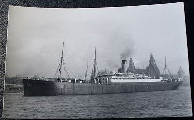 The following photo postcard image was sold on e-Bay in Jan. 2006 for GBP 11.55 or approximately U.S. $20.15. It had a copyright stamp, I read, of 'John Clarkson'. And was taken on the Mersey. That is all I did know. But I now see that the image is available here, along with two other images of the ship (-01 & -02).