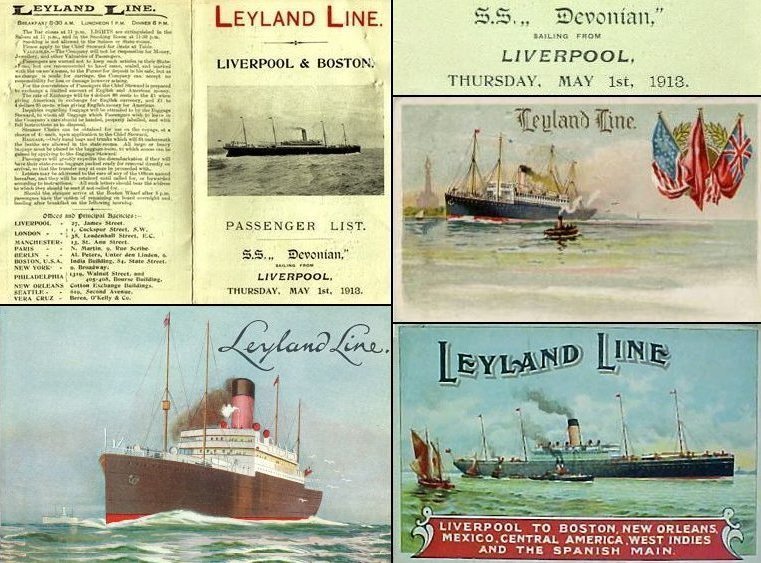 ... where the 'title' at top right & the list at top left are from a saloon passenger list re Leyland liner Devonian re a voyage from Liverpool to Boston on May 1, 1913. Captain Trant was in command. Thanks Ray Brown!