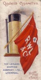 At left an old 'Ogden's Cigarettes' cigarette card that shows the Leyland Line flag and funnel colours. It would be good to have that card in better quality. It relates to the next composite image .....